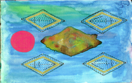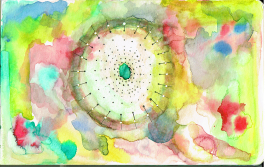 This journal, and its contents, is what reconnected me to, and inspired me to continue, making visual art. Some years earlier I had fallen into a state of perfectionism while creating which resulted in apathy for creativity, and I had lost all the joy associated with making art. Frustrated, I just let it go. Then, while living in various ecological focused communities in Portugal I began to feel an urge to express myself through paint and colour and form - and so I bought this watercolour journal.
